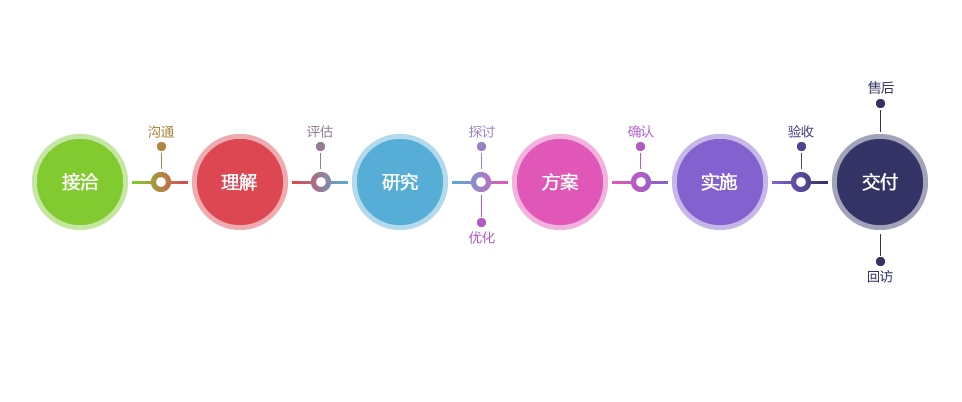清晰、可視、可持續(xù)改進的研發(fā)流程服務,在每個環(huán)節(jié)我們都秉承著打造高品質移動互聯(lián)網(wǎng)解決方案的開發(fā)理念。